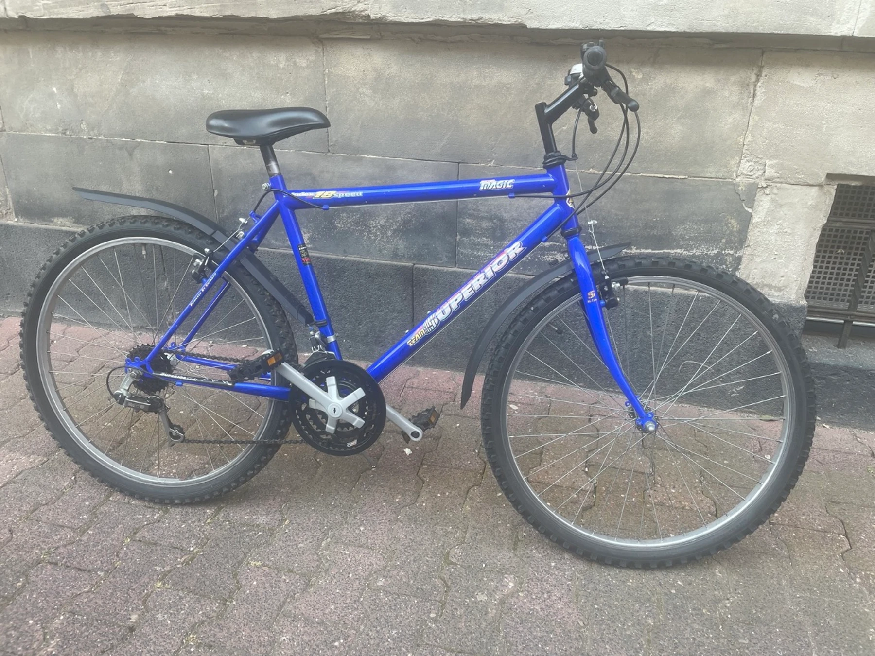 Aufsteigen & Losfahren. Das MTB befindet sich in einem guten Zustand, verfügt über eine gefettete Kette, Klingel, gut funktionierende Bremsen und einen fantastisch schönen & coolen blauen Rahmen. Damit das Rad auch an Regentagen ausgefahren werden kann, sind praktische Schutzbleche verbaut: Aufsteigen & Losfahren. Bei Fragen, immer gern melden.