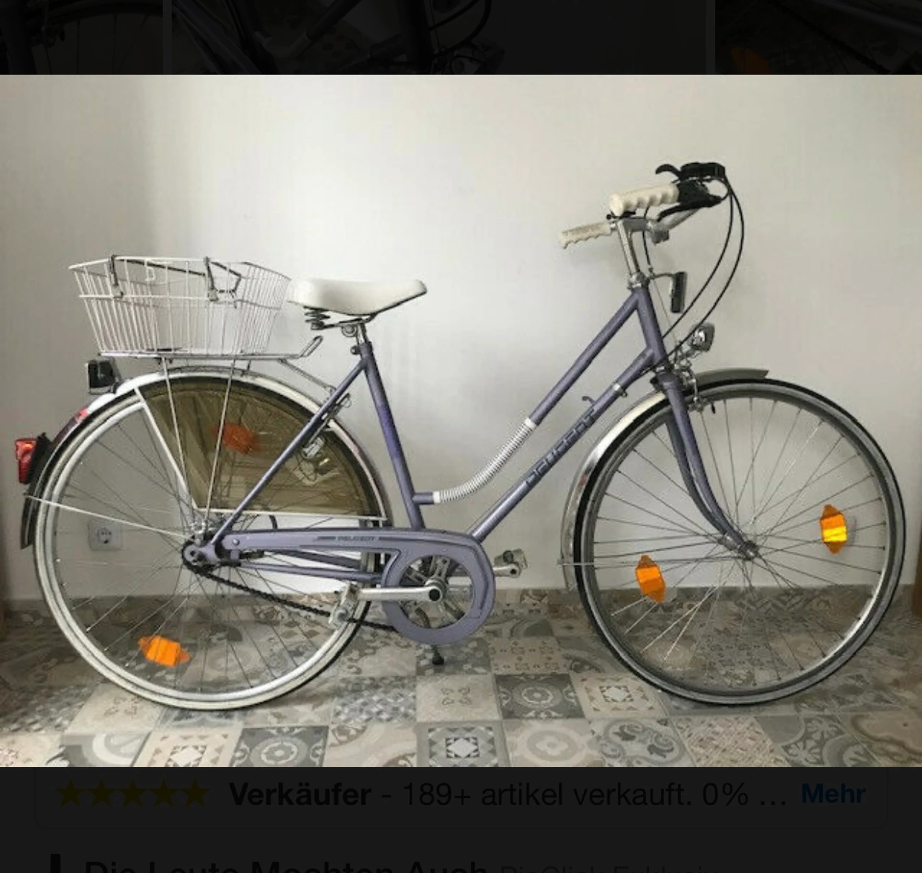 Lila blau. Model: Deauville. Rahmen 50 cm. Fünf Gang sag's Panther Sport Nabenschaltung mit Rücktrittbremse. 28 Zoll 17 × 622 – 700 C 28 Zoll RIGIDA Felgen. Weinmann Felgenbremse vorne. Vorderlicht und Rücklicht laufen über Dynamo. Rahmen Schloss mit einem Schlüssel. Seitenständer. ---> Sehr sehr gut erhalten. Vintage Rad – achtziger Jahre. Sieht aus wie neu. AUS SICHEREM BESTAND. GRAUES PLASTIK AM HINTERRAD ENTFERNT. NEUER, BEQUEMER SATTEL ANGEBRACHT ( SCHWARZ ).