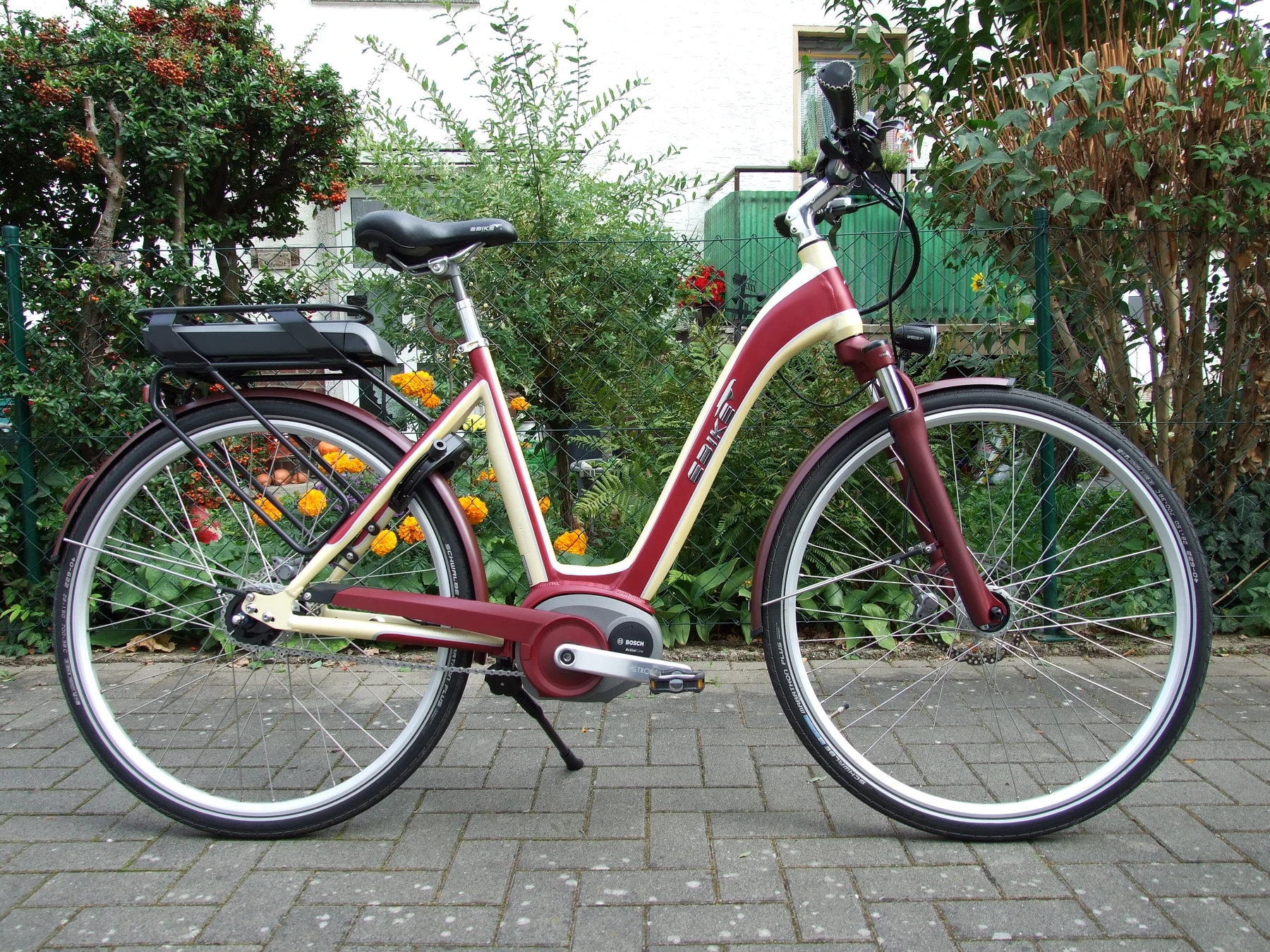 E-Bike Hersteller: EBIKE Advanced Technologies GmbH Modell: C003 Rahmenmaterial: Aluminium Sitzrohrlänge (Tretlagermitte bis Oberkante Sitzrohr): 52 cm Farbe: royal (weinrot/creme) matt Federgabel: Suntour NEX-E25-LO Antrieb: Bosch Active Line, Drehmoment 48 Nm, fünf Fahrmodi Akku: PowerPack 400, 400Wh Kurbelgarnitur: FSA Metropolis, l: 170 mm Schaltung: Shimano Alfine 8-Gang Nabenschaltung mit Rapidfire Plus Schalthebel Hydraulische Scheibenbremsen: Shimano Deore BR-T615, Bremshebel BL-T615 Nabendynamo: Shimano Deore LX, DH-3D72 mit Schnellspanner Reifen: Schwalbe Marathon Plus 40-622 Licht: Scheinwerfer Busch+Müller Lumotec IQ Cyo Senso Plus, Rücklicht Busch+Müller Toplight Mini Plus Gepäckträger: Racktime Ständer: Hebie E-Bike Mittelbauständer Schloss: Abus Amparo Rahmenschloss mit Rahmenschlosskette, gleichschließend mit Akkuschloss Ladegerät: Bosch Active/Performance Line komplette Dokumentation Das Fahrrad befindet sich in einem sehr guten Zustand und wurde insgesamt nur 78 km gefahren. Aufbewahrt wurde es stets in einem klimatisierten Kellerraum.