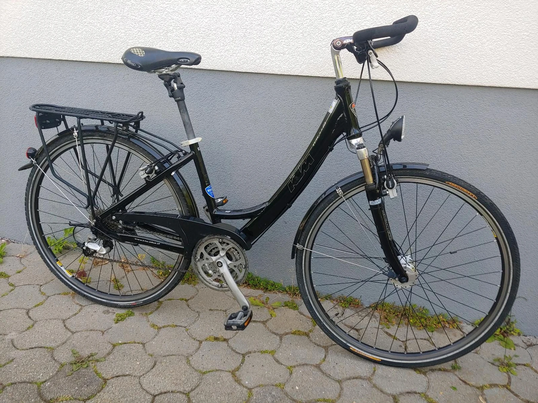 KTM made in Austria Rahmenhöhe 44cm Laufrad 28Zoll Geschweißter Alu Rahmen Hydraulische Magura HS11 Bremse v/h Shimano FH- M510 Nabe hinten Shimano Deore Kurbeln Shimano Hollowtech Innenlager Shimano Deore XT Schaltwerk 27 Gänge (3x9fach) Shimano Schalthebel l/r Shimano Kettenblätter Shimano Nexus Inter·L HB-NX30 Nabendynamo Suntour CR 920 magnesium Federgabel SR Suntour gefederte Parallelogramm Sattelstütze Busch&Müller Halogen Licht vorne Selle Italia Gelsattel Alu Modolo Mohican Alu/Magnesium Ergo- Lenker KTM verstellbarer Vorbau SKS Nirosta Edelstahl Schutzbleche m. Schmutzfänger Gepäckträger Mavic T224 Alu Hohlkammer Felgen 622x19 m. Felgenverschleißanzeige Toplight plus Standlicht hinten Keine Mängel Läuft butterweich schaltet leicht. Solange online ist es noch zu haben ! Privat