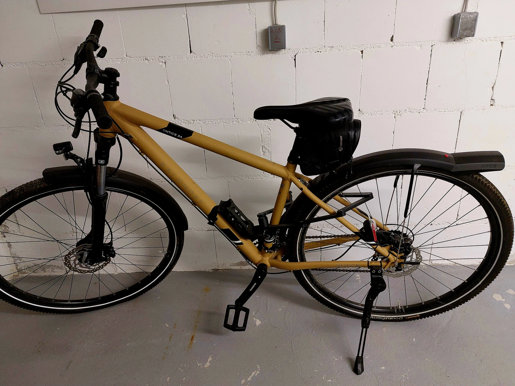 KALKHOFF ENTICE Trekkingrad 24, 27G44S Farbe: sand/beige matt, mit Lichtanlage, mit Schutzblech. Rahmennummer vorhanden & im Fahrradfachgeschäft registriert. Kauf erfolgte im April 2020 (Rechnung im Original vorhanden). Gefahrene Kilometer: ca. 500 (wenn überhaupt) inkl Service Booklet (nicht benutzt) inkl Originalbetriebsanleitung mit CD (beides nicht benutzt) mit SKS EXPLORER STRAPS 1800 Satteltasche mit Klettverschlussbefestigung (Wert ca. 20,00 Euro) mit stabilem Faltschloss sowie Halterung (Wert ca. 25,00 Euro) mit 2-Wege-Luftpumpe und Halterung (unbenutzt in Originalverpackung, Wert ca. 13,00 Euro) Das Fahrrad wurde immer im Keller oder in der Garage untergestellt. Es ist nicht ganz aufgepumpt und ein wenig angestaubt, da es aktuell nicht benutzt wird. Besichtigung gerne nach Vereinbarung möglich.