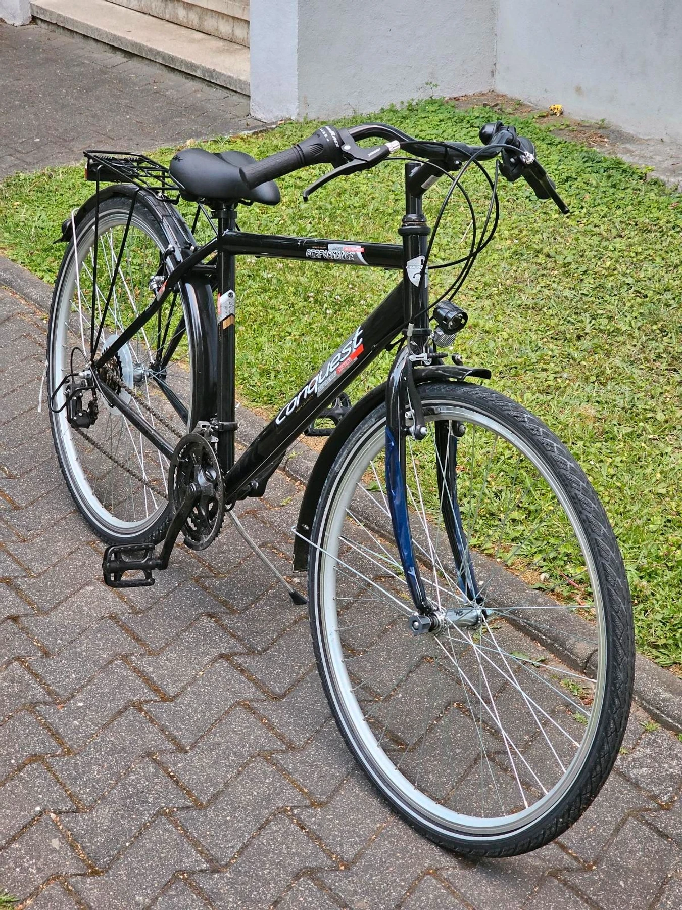Hallo, verkaufe ein kaum gebrauchtes Fahrrad. Leider hat die Größe für mich nicht gepasst. Ausstattung: - 18-Gang Kettenschaltung - Rahmenhöhe: Herren 50 cm - Vorder- und Hinterrad V-Bremsen - Aluminium-Felgen - Trekkingsattel mit Elastomer-Dämpfung - LED-Scheinwerfer, 15 LUX - Gepäckträger mit LED-Rücklicht Komplett zusammen gebaut und sofort fahrbereit! Besichtigung erwünscht. Keine Luxusausstattung, aber hat alles was man braucht. Privatverkauf ohne Garantie, Gewährleistung oder Rücknahme. Standort: Frankfurt Dornbusch (Hügelstraße)